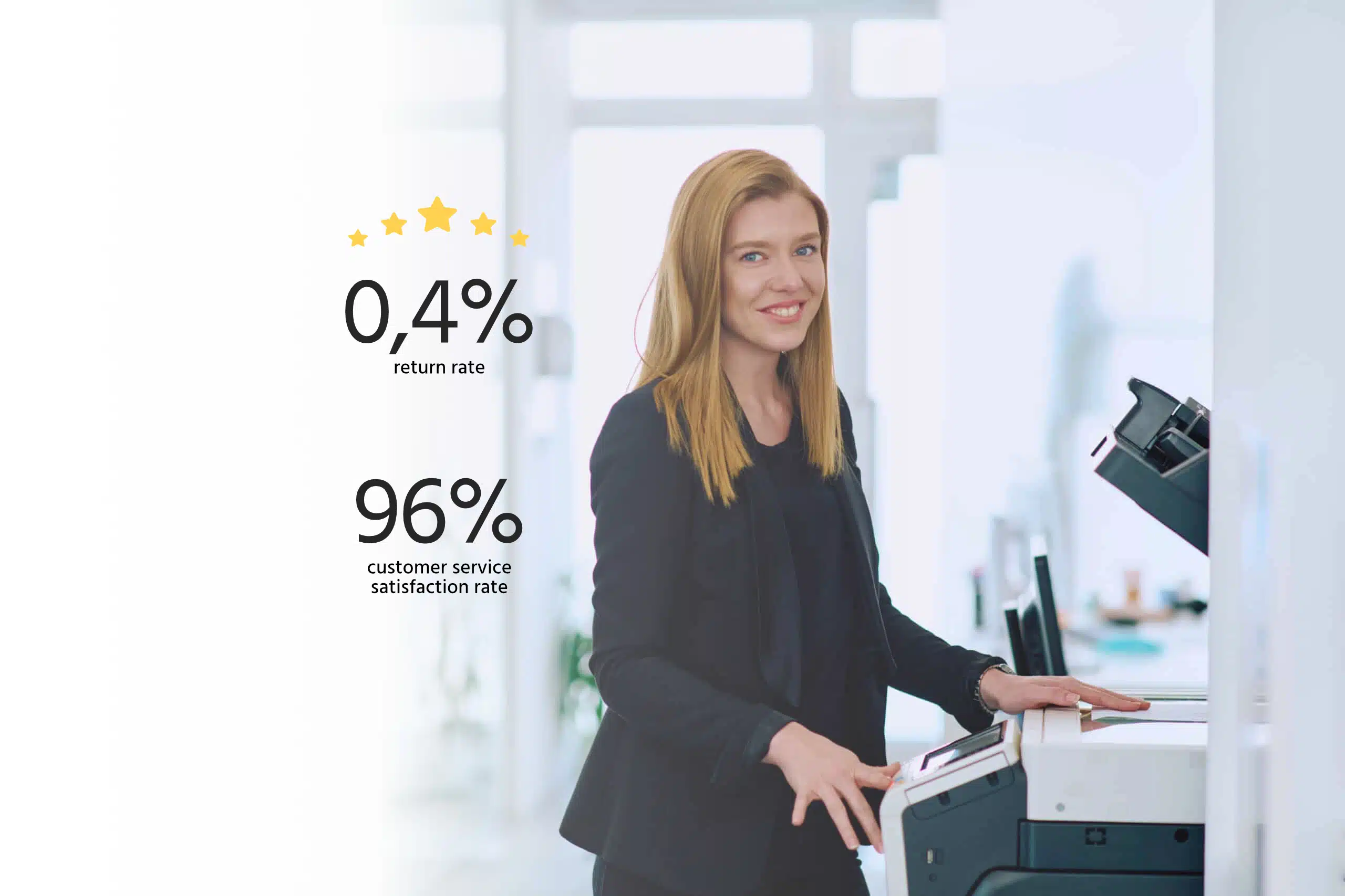 With a return rate of only 0.4%, we offer you exceptional reliability and quality support to ensure your satisfaction.